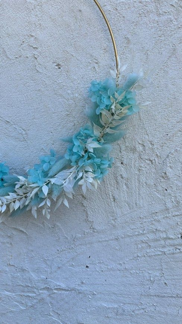 Aurore Florale – Élégante et intemporelle, cette couronne de fleurs séchées et stabilisées allie la douceur du bleu clair à la pureté du blanc. Chaque fleur est soigneusement sélectionnée et disposée pour créer un équilibre parfait entre finesse et charme naturel. Idéale pour sublimer vos espaces ou offrir un cadeau raffiné, Aurore Florale évoque une sérénité délicate qui saura embellir n'importe quel intérieur.